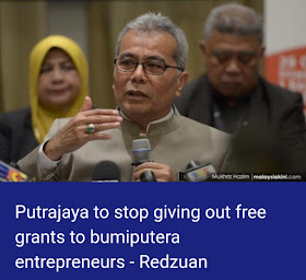 Di satu pihak, Menteri Hal Ehwal Ekonomi mengatakan kerajaan komited membantu golongan B40 manakala di satu pihak yang lain, Menteri Pembangunan Usahawan pula mengatakan kerajaan bercadang menghapuskan geran untuk golongan Bumiputera!!!