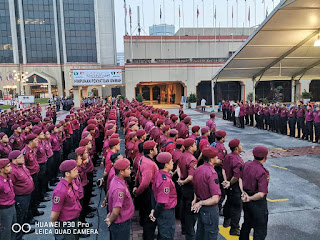 Anggota unit amal PAS yang berpakaian warna merah manggis (maroon) kelihatan cuba mengawal dan mengarahkan aliran orang ramai.