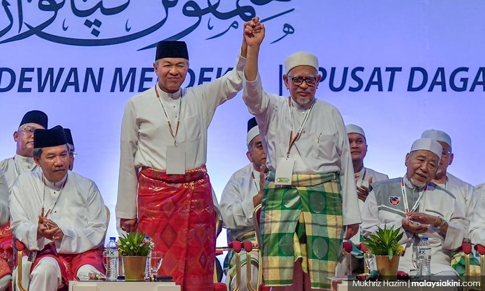 Hadirin bersorak setiap kali pengumuman ketibaan pemimpin kedua parti itu, seperti kehadiran bekas presiden Umno Najib Razak, Presiden Umni Dr Ahmad Zahid Hamidi dan Presiden PAS Abdul Hadi Awang.