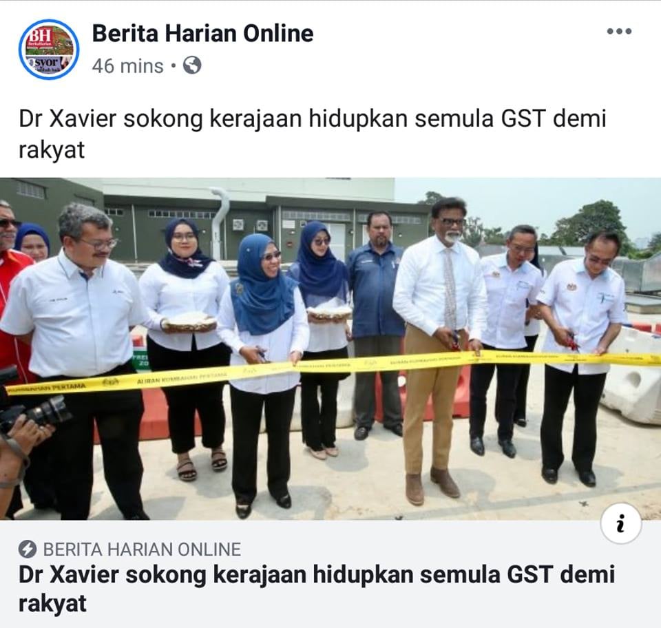 4) Sekarang, Dr Xavier Menteri Air Tanah dan Sumber Asli pula kata setuju GST dihidupkan semula demi rakyat.