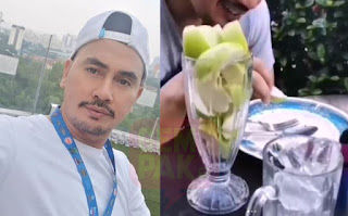 Mahukan epal yang tidak dicampurkan dengan air, penyanyi lagu Nadiku itu diberikan segelas buah epal hijau yang telah dipotong bersama secawan ais ketul.