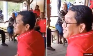 Dia kata, nasib baik kau peja (kurang jelas). Orang kampung panggil saya (kurang jelas) kalau kena kat orang lain, ada lah tak payah sebut nama. Dia janji nak jadi YB.