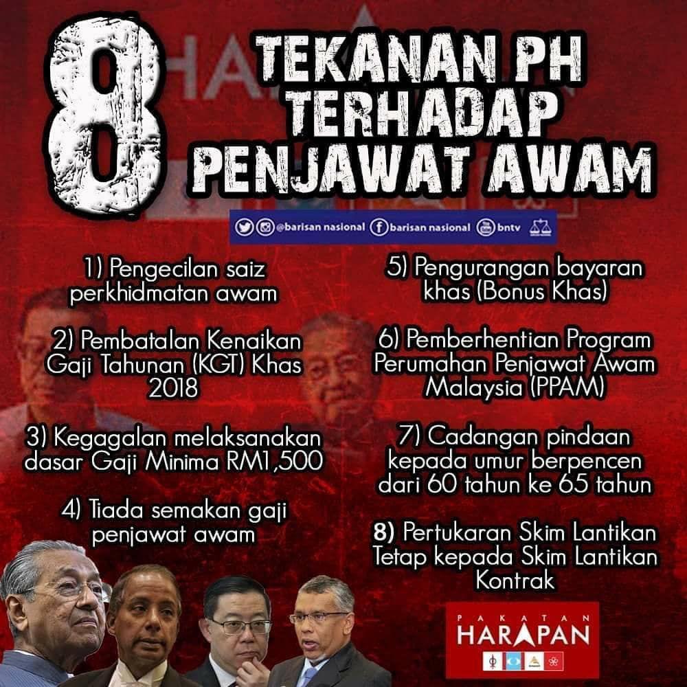 Kerajaan PH yang menjanjikan langit dan bumi kepada pejawat awam jika BN dijatuhkan. Penjawat awam sangat mengharapkan suatu perubahan demi kebaikan penjawat awam yang 60 tahu dalam pemerintahan BN.