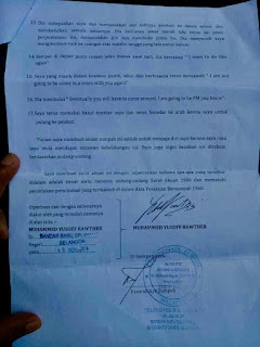 Yusuff mendedahkan akuan bersumpahnya pada hari ini semasa "sidang akhbar" di lokasi yang tidak diketahui. Terdapat hanya satu mikrofon dan satu peranti rakaman audio di hadapannya.