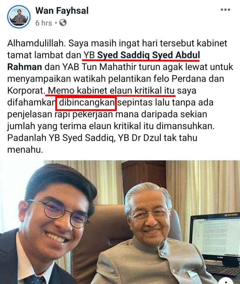 Rupa-rupanya Pegawai Khas dia kata Syed Saddiq ada dalam Kabinet yang bincang pemansuhan BIPK.