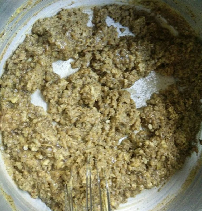 Satukan kesemua bahan dan gaul rata.