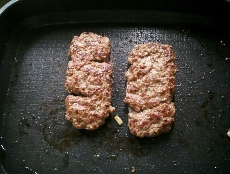 1. Masak daging burger hingga keperangan dan masak sepenuhnya.