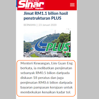 Kesemua "penjimatan" RM68 bilion ini ditanggung oleh pencarum KWSP dan pengguna tol masa hadapan dari tahun 2038 hingga 2058.