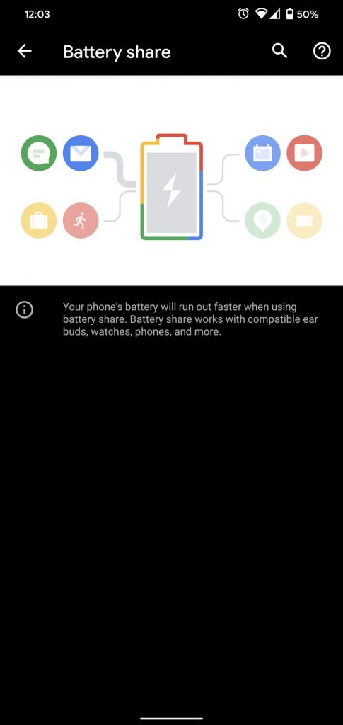 Fungsi ini mungkin tidak akan disertakan dalam versi akhir Android 11 pada peranti Google Pixel sedia ada. Tetapi ia adalah fungsi yang pasti akan tiba pada Pixel 5 atau peranti-peranti Pixel lain di masa akan datang. Seperti nama fungsi itu sendiri “Battery Share”, ia membawa maksud perkongsian bateri. Ini bermakna pengguna boleh berkongsi bateri peranti Pixel mereka dengan peranti atau aksesori lain. Anda mungkin pernah dengar konsep ini, iaitu reverse wireless charging atau pengecasan nirwayar berbalik.