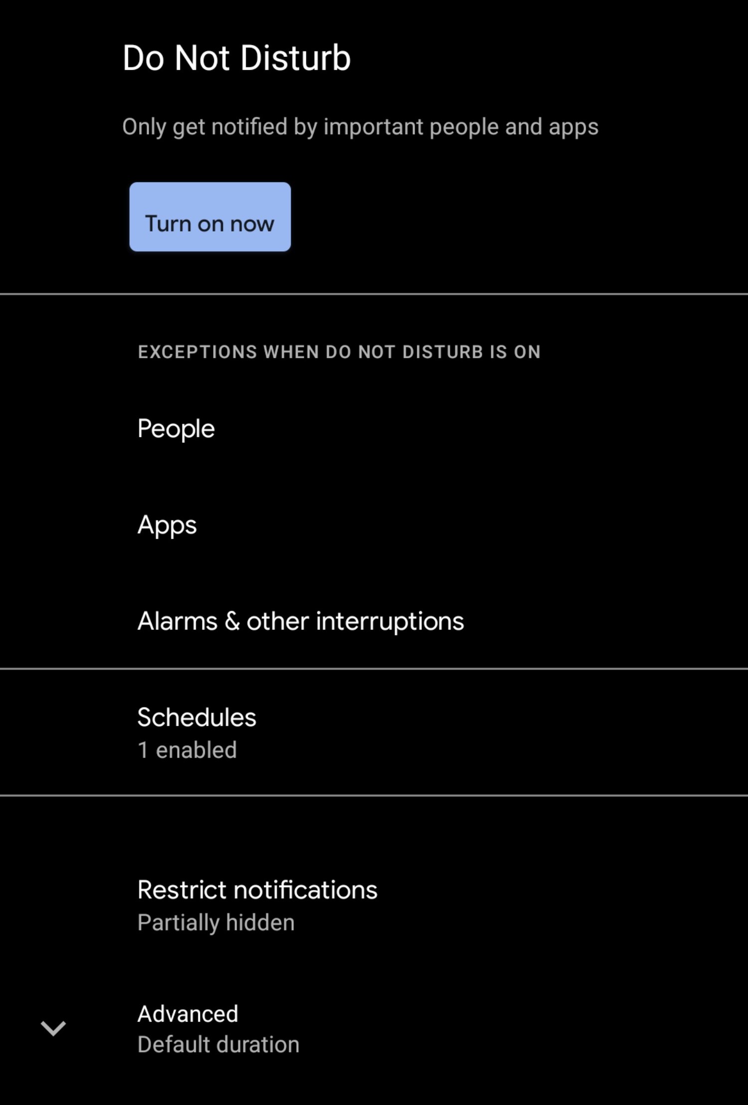 Do Not Disturb adalah fungsi yang wujud untuk semua platform, tidak kira Windows, Android atau iOS. Ia adalah fungsi bagi mematikan notifikasi agar pengguna tidak diganggu ketika memandu, tidur, dalam mesyuarat atau sedang berehat. Dalam Android 11, tidak banyak pun perkara baharu. Tetapi apa yang Google lakukan adalah, mengubah susunan di dalamnya.