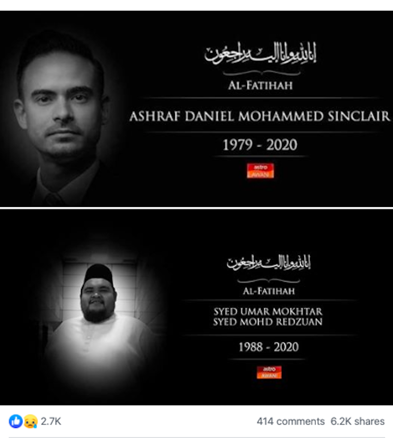 Posting tersebut menerima 6,200 perkongsian dan 2,700 tanda suka selain komen warganet yang rata-rata turut beringat serta berharap agar roh ketiga-tiga Allahyarham ditempatkan dalam kalangan orang beriman.