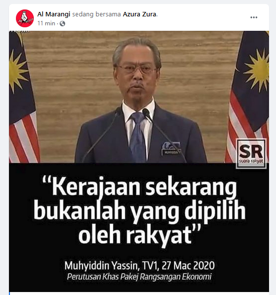 Hari ini terbaca satu poster syang dikeluarkan oleh cybertropper PH "Suara Rakyat". Kononnya kerajaan ini bukan pilihan rakyat kini disebar oleh group-group PH.