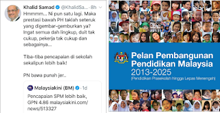 Apa yang Lid tak faham ialah pada tahun 2013, Pelan Pembangunan Pendidikan Malaysia 2013-2025 telah dilancarkan sebagai sebahagian dari program Transformasi Negara di bawah kerajaan BN masa saya PM.