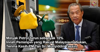 Minyak Petrol turun sebanyak 10% Inilah Pemimpin yang Rakyat Malaysia mahukan, Terima Kasih PN