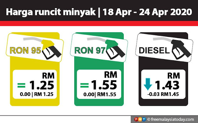 Diesel pula turun kepada RM1.43 seliter.