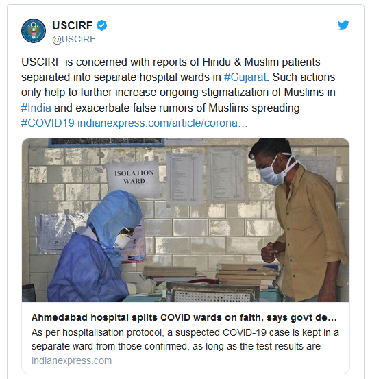 Di saat dunia sedang getir dengan pandemik COVID-19, negara India nampaknya masih lagi mengamalkan dasar diskriminasi agama dengan mengasingkan pesakit positif COVID-19 mengikut agama yang terdiri daripada penganut Muslim dan Hindu.