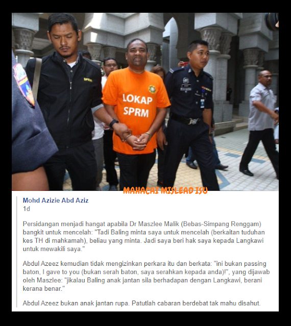 3) Kemudian, YB Langkawi bangun mencelah dan diberikan ruang oleh YB Baling. YB Langkawi mahu YB Baling cheritakan semua ini dalam mahkamah, bukan dalam dewan parlimen. Maka YB Baling jawab, tiada satu pun tuduhan ke atas beliau yang berkaitan dengan TH yang disabitkan di mahkamah. Beliau terpaksa menjawab dalam parlimen kerana beliau telah lama menanti saat yang sesuai untuk menjawab semua tuduhan ke atas beliau yang dikatakan sebagai "penchuri duit Tabung Haji".