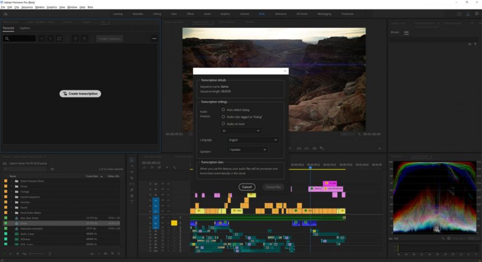 Dalam kemaskini Adobe Premiere Pro yang terbaru, dibantu dengan kecerdasan buatan Adobe Sensei, fungsi ‘Speech To Text’ telah tersedia yang membolehkan perisian ini menganalisa dialog percakapan, dan menghasilkan sarikata untuknya.