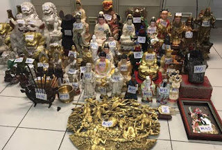 "Suspek ditahan di Jalan Gombak, Wangsa Maju dan pemeriksaan lanjut di rumah suspek di Batu 5, Jalan Gombak mendapati sebanyak 82 patung berhala dan peralatan untuk sembahyang ditemui.