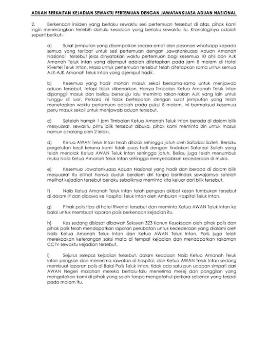 Naib Ketua AMANAH Teluk Intan (wanita) ditumbuk oleh bekas SETPOL Pengerusi AMANAH Perak sehingga pengsan