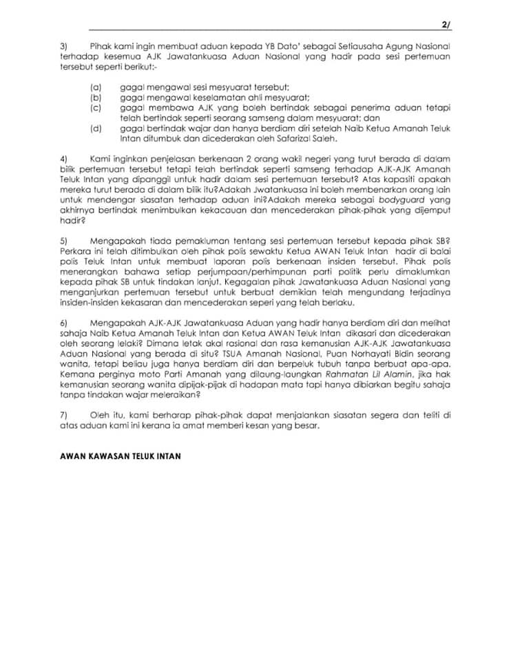 Mereka dan Wanita PAN Teluk Intan mau keadilan ditegakkan, memandangkan tidak ada sebarang tindakan diambil keatas penyerang.