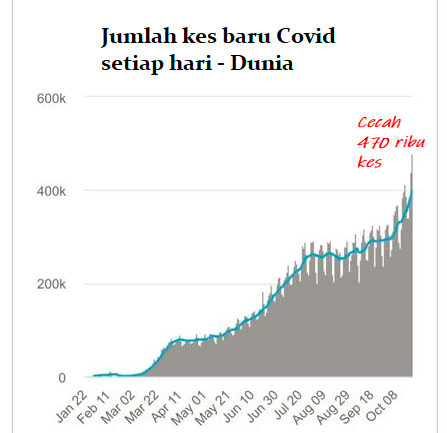 Pertambahan kes covid-19 selari dengan pertambahan kes dunia untuk gelombang ke-3