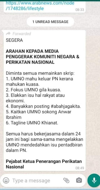 Sebagai Ketua Penerangan PN, Azmin katanya arah cyber troopers PN guna naratif “UMNO gila kuasa” dan “UMNO mahu Anwar jadi PM”.