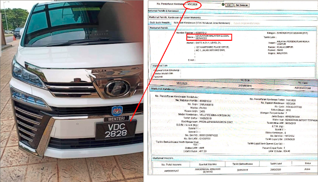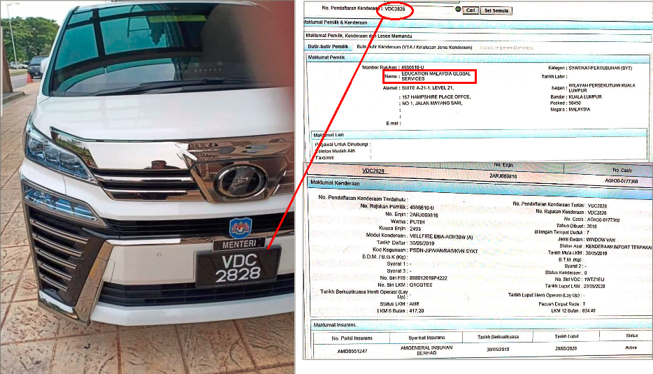 Kereta Velfire diguna Menteri ini adalah milik syarikat Malaysia Education Global Services.