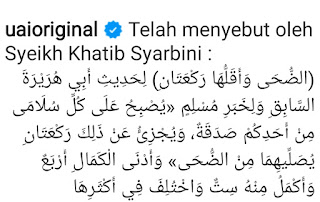 " Rasulullah Saw. bersabda, 'Orang yang mengerjakan sholat dhuha tidak termasuk orang lalai." (HR Al-Baihaqi dan An-Nasa’i)