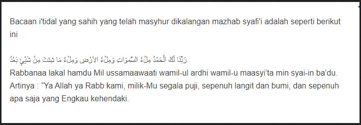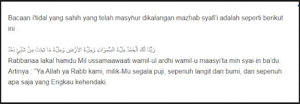 Keenam adalah I'tidal dengan membaca bacaan sebagai berikut: