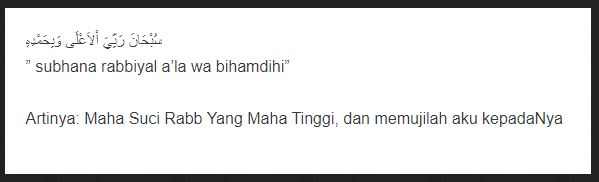 Bagian perut jari kedua kaki kamu harus dipancalkan ke lantai dan ujung jarijari kaki menghadap ke kiblat. Bacaan tasbih ketika sujud adalah sebagai berikut: