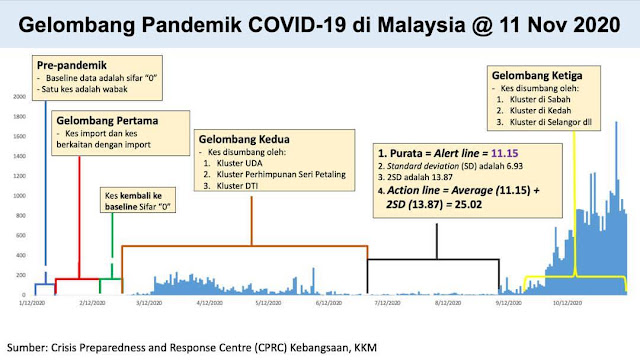 Penjelasan bagi Gelombang Pandemik COVID-19 di Malaysia (Data sehingga 11 November 2020)