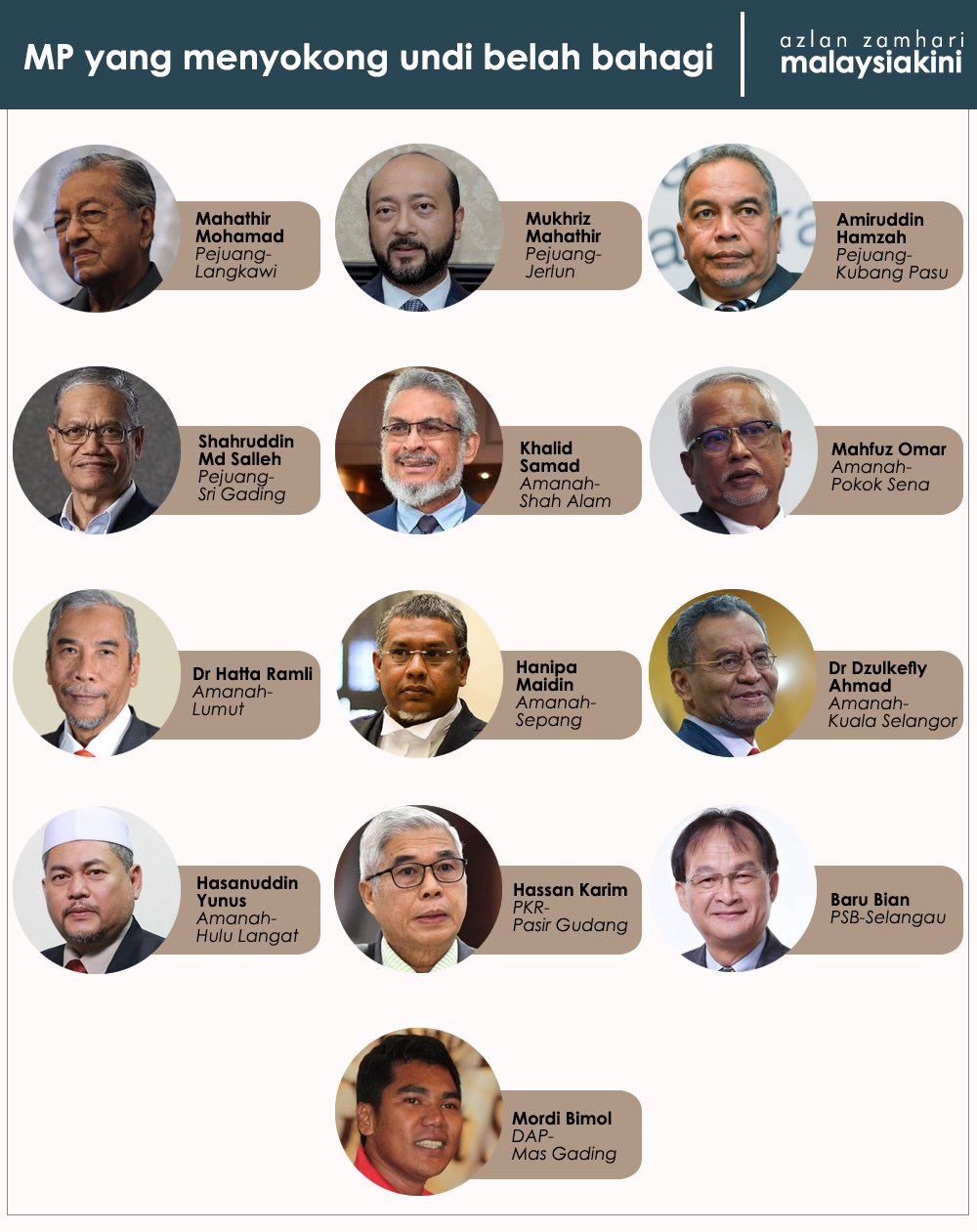 Malaysiakini telah mengenal parti 13 anggota parlimen yang menyokong pengundian secara en bloc.