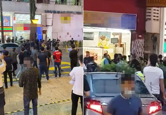 Terdahulu tular dua video yang menunjukkan sekumpulan lelaki bergaduh di hadapan Plaza Low Yat, di sini, petang tadi.