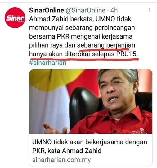Maknanya dulu yang nak jatuhkan PH kerana dap menghancurkan hak orang melayu dah jadi ok asal umno dapat kuasa? Kuasa tembolok takkan selamanya dapat dipuaskan, pi mai pi mai duk tang tu jugak...jaguh kampung bergaduh sesama bangsa je. Dengan bangsa lain pijak semut pun tak mati. Betul la quran ada menyebut, sesuatu bangsa akan dianugerahkan zaman kegemilangannya. Bangsa Melayu gemilang zaman kesultanan melaka, namun masa depan kian malap....pathetic