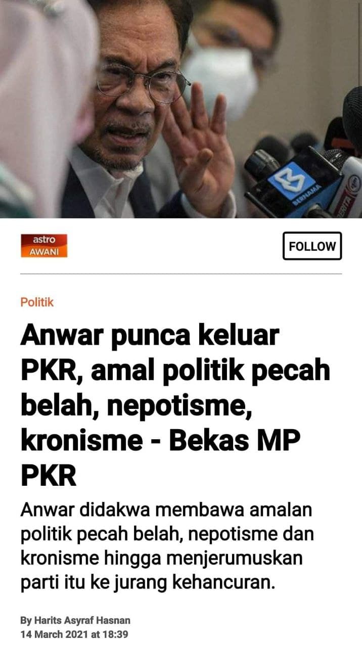 PS: Mana ada dalam sejarah politik malaysia Anak bini dalam parti politik? siap kuasai jawatan2 utama parti? hanya dalam PKR