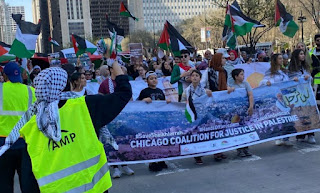 Alderman Byron Sigcho Lopez, penyokong Palestin yang menyertai bantahan ketika berucap pada tunjuk perasaan tersebut menyifatkan, perjuangan yang dilakukan tersebut adalah revolusi antarabangsa.