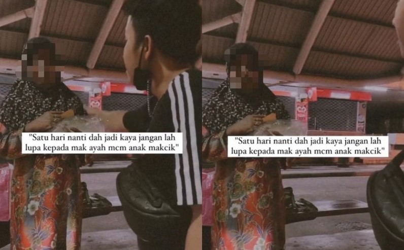 "Lepas kami bagi sumbangan tu, dia pesan 'Bila dah kaya jangan jadi macam anak dia, jangan lupa ibu bapa’ tapi makcik ni tak ada cerita pula pasal anak dia buang dia'," katanya.