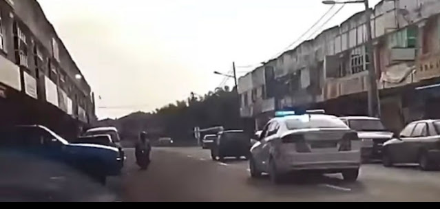melanggar sebuah kenderaan polis dan terus memecut laju.